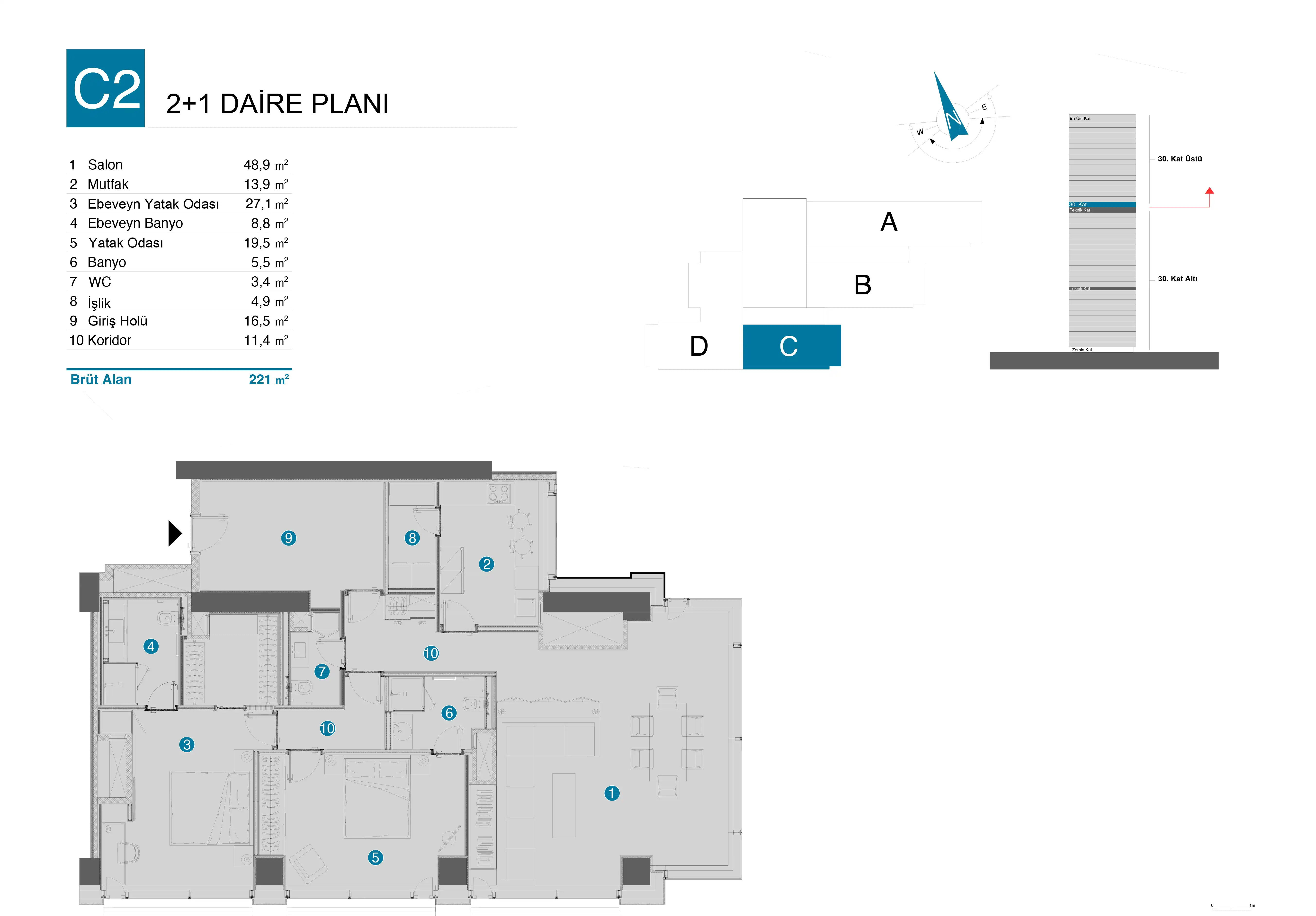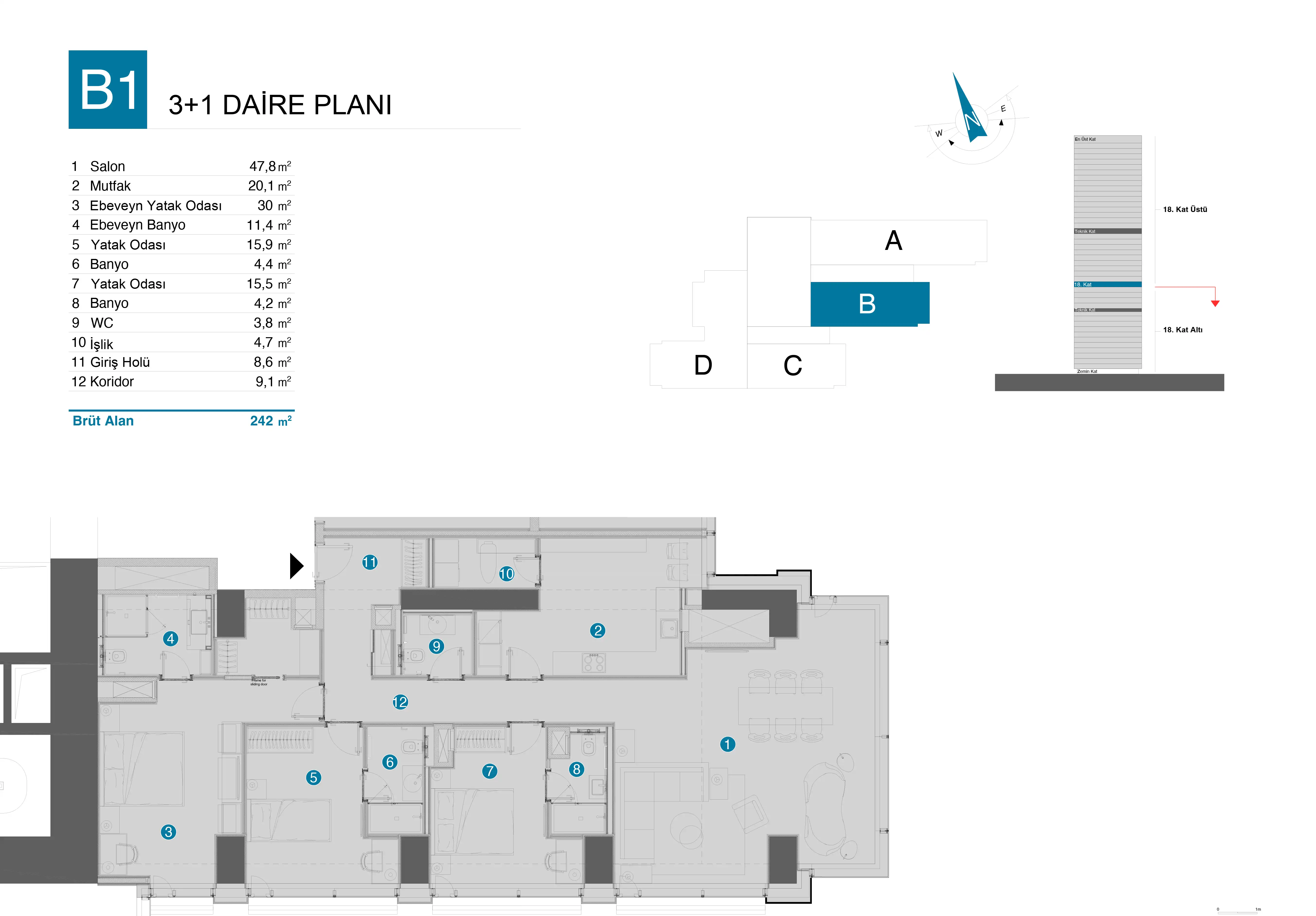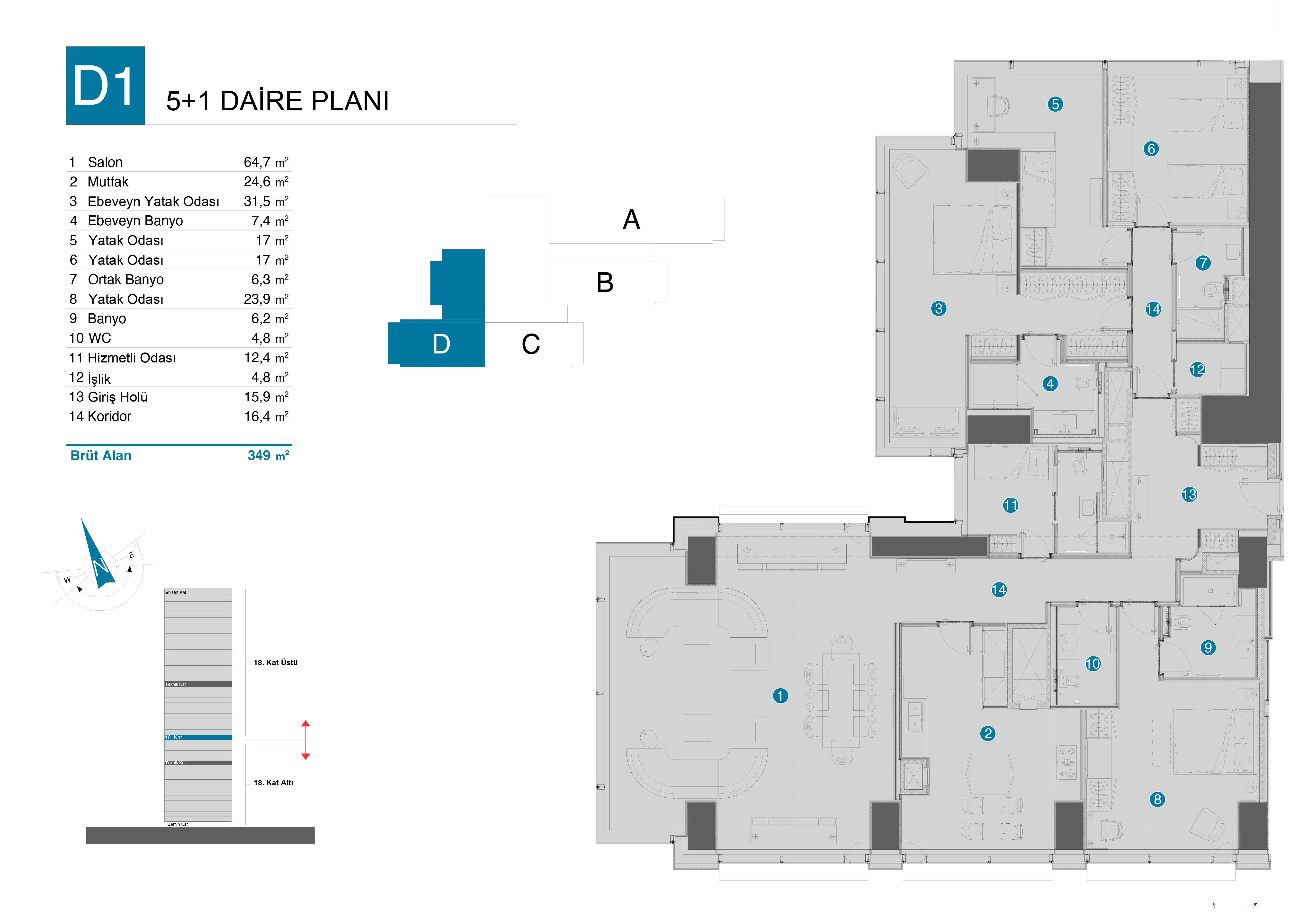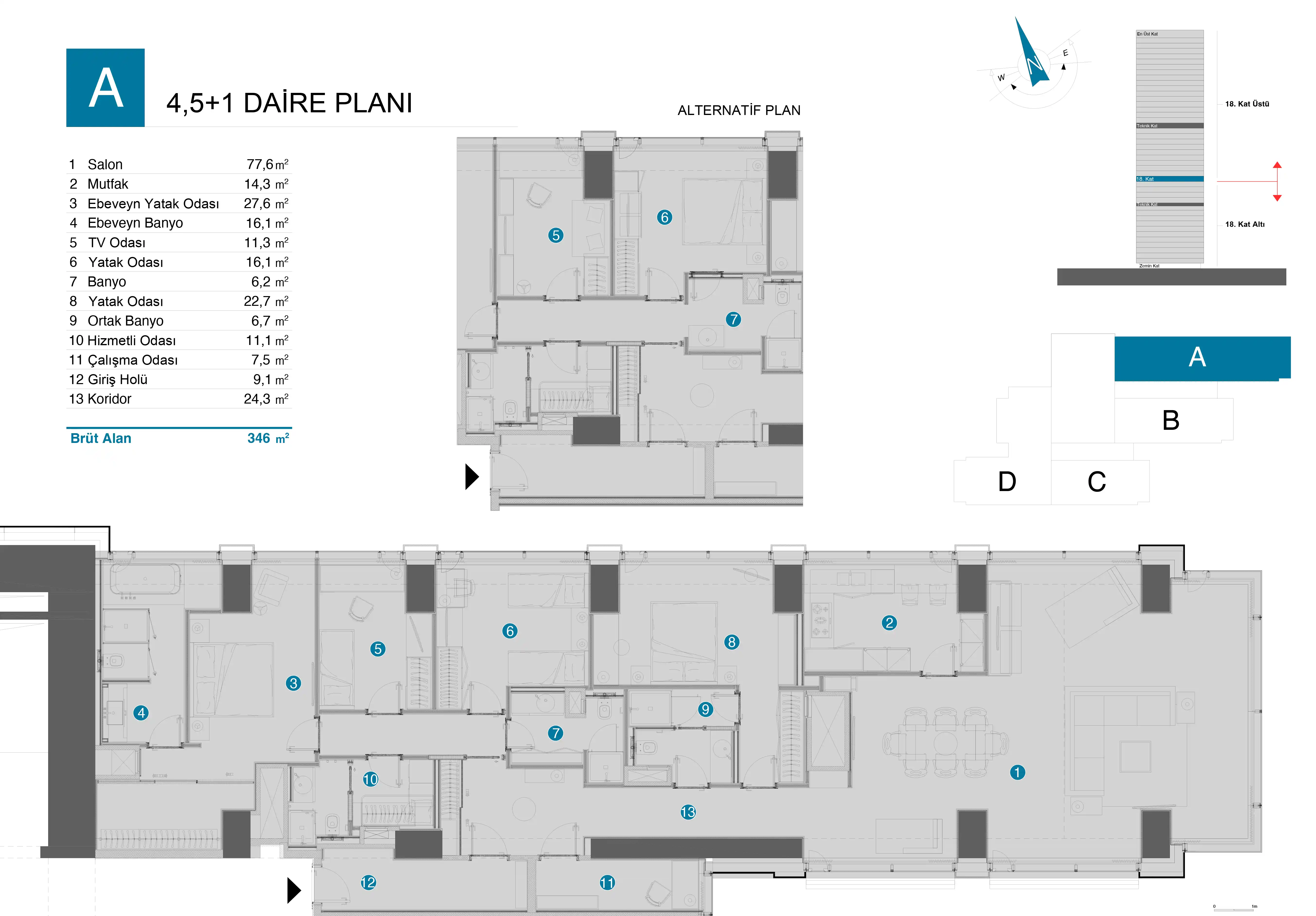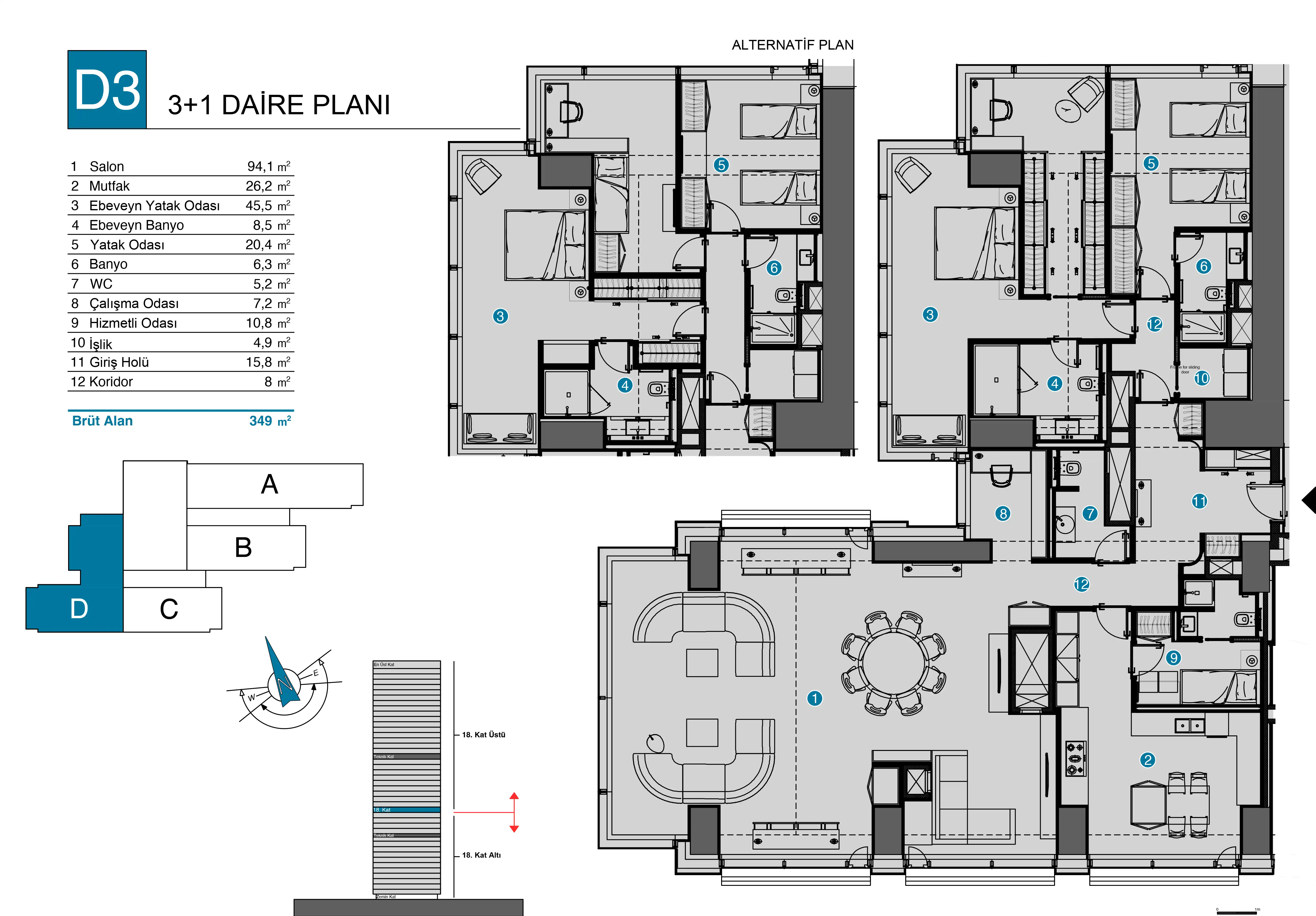 - Esnek Daire Seçenekleri: 2+1'den 6+1'e uzanan farklı büyüklüklerde, özel depolama alanlı daireler.